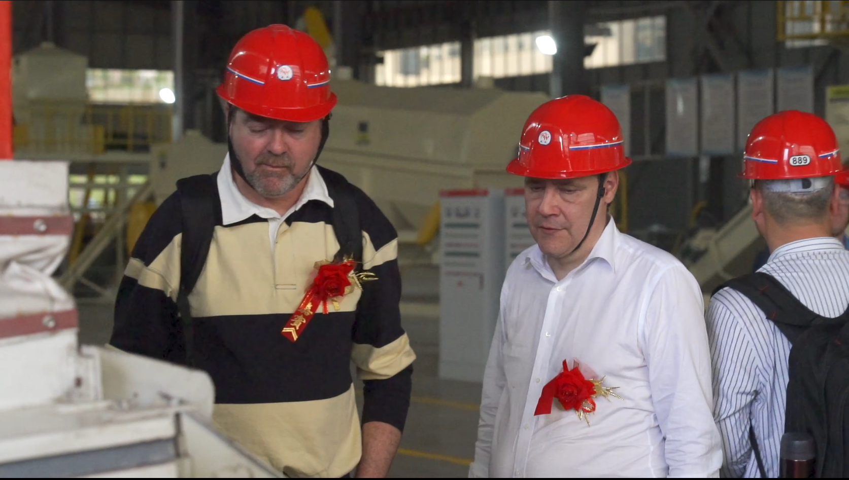 代表團到車間參觀交流我司廢鋰電池回收成套設備演示線、原材料、設備產物等