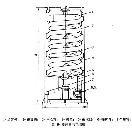 (2)精、中、尾礦均在螺旋槽的末端接出,在螺旋槽中部不設精礦截取裝置。