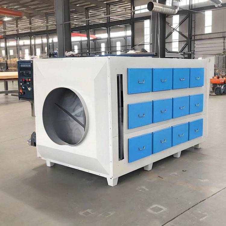 車間含有有機氣體或顆粒物經集氣罩收集,管道輸送有機氣體進入活性炭塔,有機氣體進入塔內時,風速順間降下,氣體內含的較大顆粒雜物便自然沉降入塔底部,而溶入氣體內的有機氣體部分隨氣體流向流進活性炭過濾層,有機氣體進入炭層時,有機氣體被活性炭吸附進炭內,而干盡的空氣穿過炭層進入出氣倉,氣體經過機械自吸后排入大氣中.而活性炭層的在吸附過程中,炭會有個飽和的時間段,其活性炭飽和的過程長短與氣體本身內部所含氣體的濃度和工作的時間長短有直接相關。