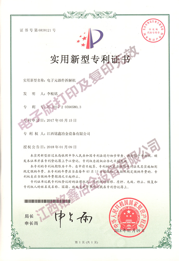 廢舊電路板干式回收成套設備- ZL20150779760.7